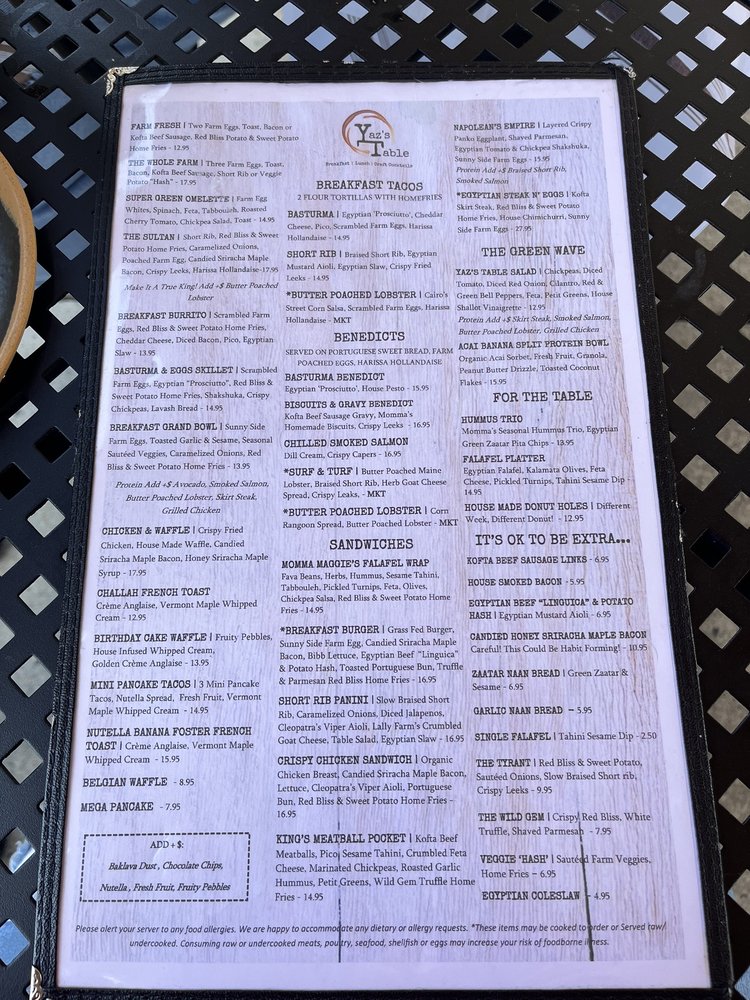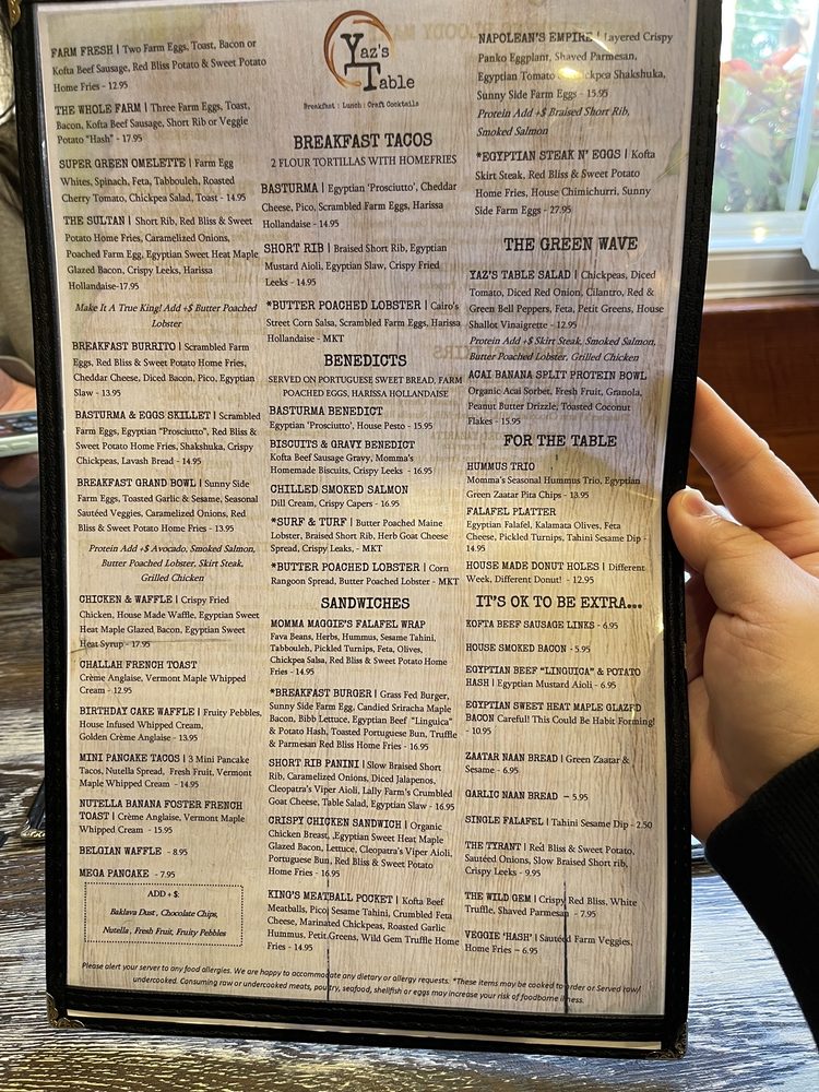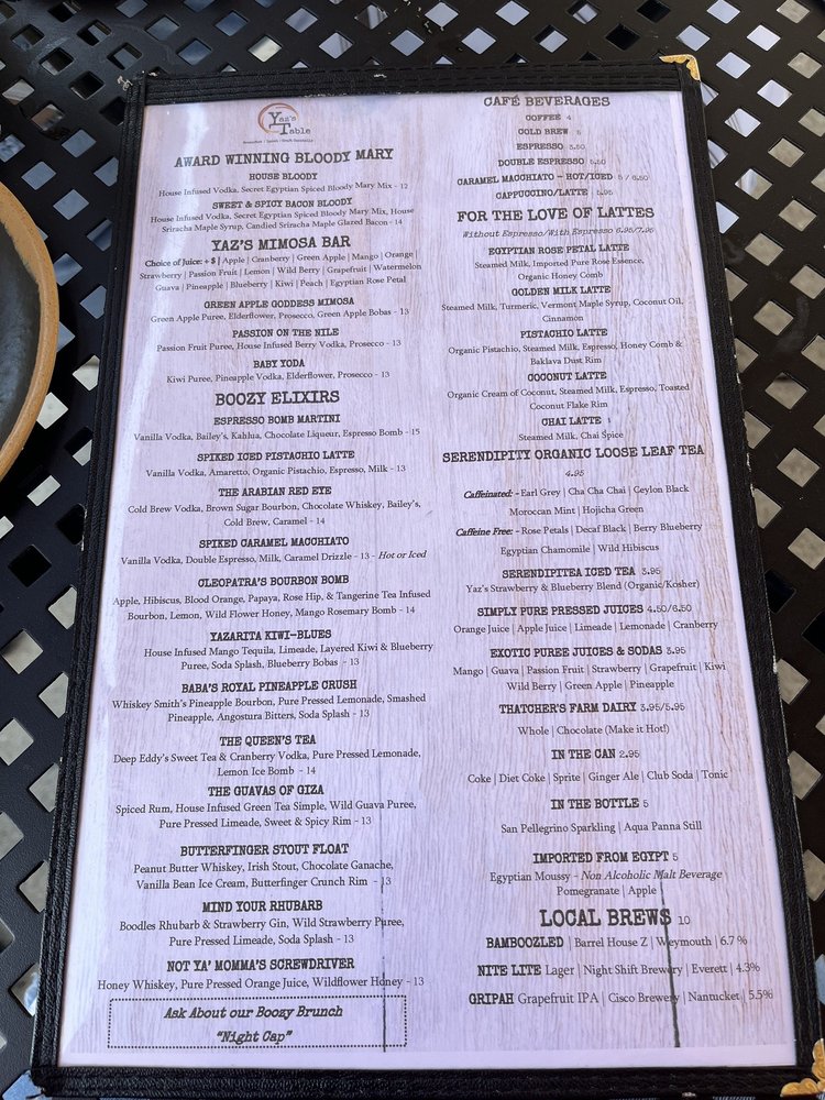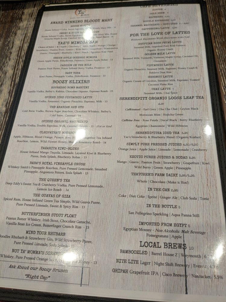 Welcome to Yaz's Table, a Mediterranean-New American fusion restaurant located in Abington, MA. This trendy and intimate spot offers a diverse menu with vegan options and limited vegetarian choices, perfect for breakfast, brunch, or lunch. With a full bar and happy hour specials, Yaz's Table is great for groups, kids, and even offers catering services. The restaurant is wheelchair accessible, provides gender-neutral restrooms, and is open to all. The menu is easily accessible with QR code options, and the cozy outdoor seating is perfect for enjoying your meal. The restaurant also offers takeout, delivery, and even a drive-thru for convenience. Don't miss out on the delicious dishes and welcoming atmosphere at Yaz's Table for a unique dining experience.